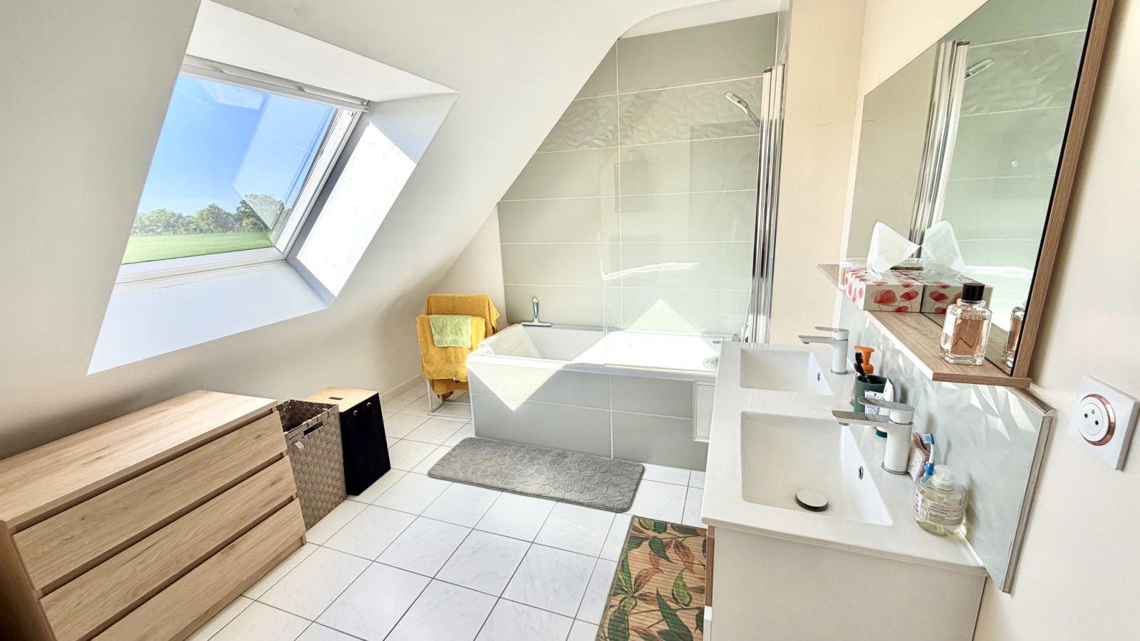 À l’étage, vous découvrirez trois belles chambres ainsi qu’un bureau pouvant facilement être transformé en chambre d’enfant, chambre d’amis ou dressing selon vos besoins. Une salle de bains et un WC viennent compléter ce niveau.