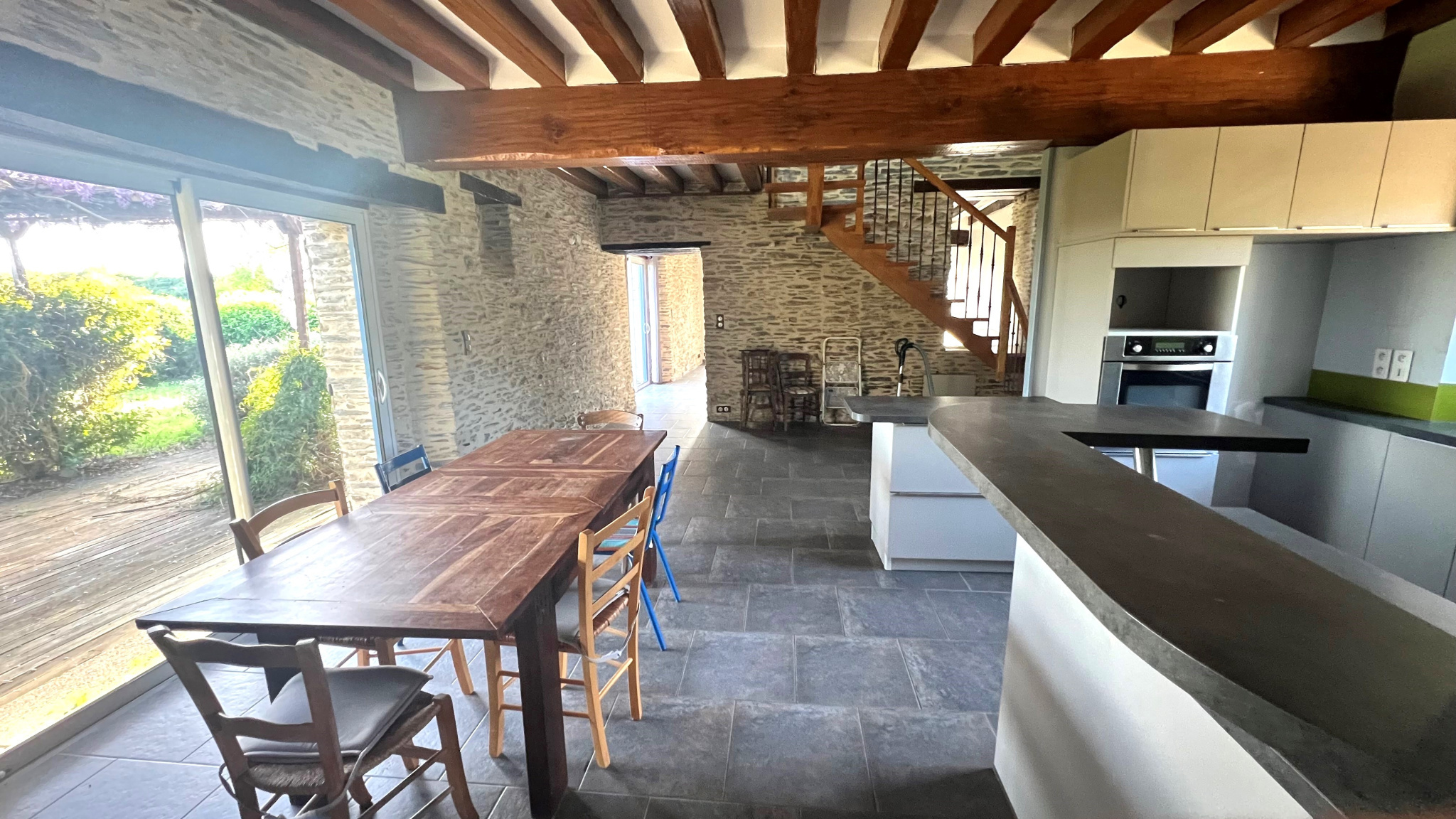 ACHAT MAISON ANCIENNE LA CORNUAILLE VAL D'ERDRE-AUXENCE - NOUVEAUTÉ ARNAUD THAUMOUX IMMOBILIER (ATI) - Découvrez cette élégante longère de caractère, où authenticité et art de vivre se rencontrent dans un cadre privilégié. Dès l’entrée, le rez-de-chaussée dévoile des volumes chaleureux et raffinés : une salle à manger baignée de lumière avec cuisine ouverte, prolongée par une arrière-cuisine discrète. Le séjour, sublimé par une cheminée, invite à des instants de convivialité dans une atmosphère feutrée. Une chambre, une salle d’eau, un espace buanderie ainsi que des dégagements parfaitement agencés complètent ce niveau avec harmonie. À l’étage, un espace bureau propice à la sérénité précède trois chambres lumineuses. Une salle de bains, un couloir élégant viennent parfaire cet étage, offrant confort et potentiel supplémentaire. En complément, une seconde aile, pouvant être aisément reliée à l’une des chambres, offre un espace supplémentaire d’environ 30 m² à aménager selon vos aspirations. Véritable opportunité d’expression, ce volume aux multiples possibilités pourra accueillir un bureau élégant, un atelier inspirant ou encore une suite d’invités intimiste, s’adaptant parfaitement à votre art de vivre et à vos projets. À l’extérieur, la propriété s’étend sur un magnifique terrain paysager de 4 200 m², véritable écrin de verdure. Vous y découvrirez une piscine invitant à la détente, un carport ainsi qu’un abri de jardin, pensés pour allier esthétisme et praticité. Un bien rare, alliant charme authentique et prestations de qualité, idéal pour les amateurs de demeures de caractère.